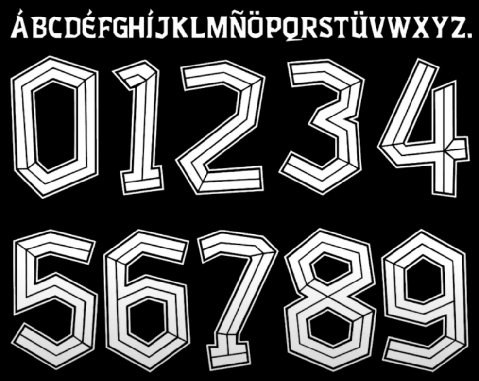 Diferente de fontes mais arredondadas ou clássicas, os números apresentam cortes angulares estratégicos e uma espessura (bold) que garante excelente leitura tanto no estádio quanto na transmissão televisiva. É o design ideal para quem busca criar mockups realistas, personalizar camisas de torcida ou trabalhar com sublimação de alta fidelidade.