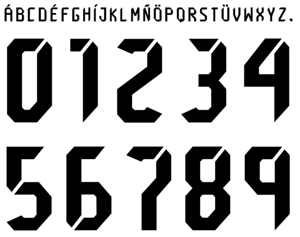- Conjunto de Caracteres: Inclui numeração completa (0-9) e alfabeto maiúsculo padrão utilizado nas camisas de jogo.