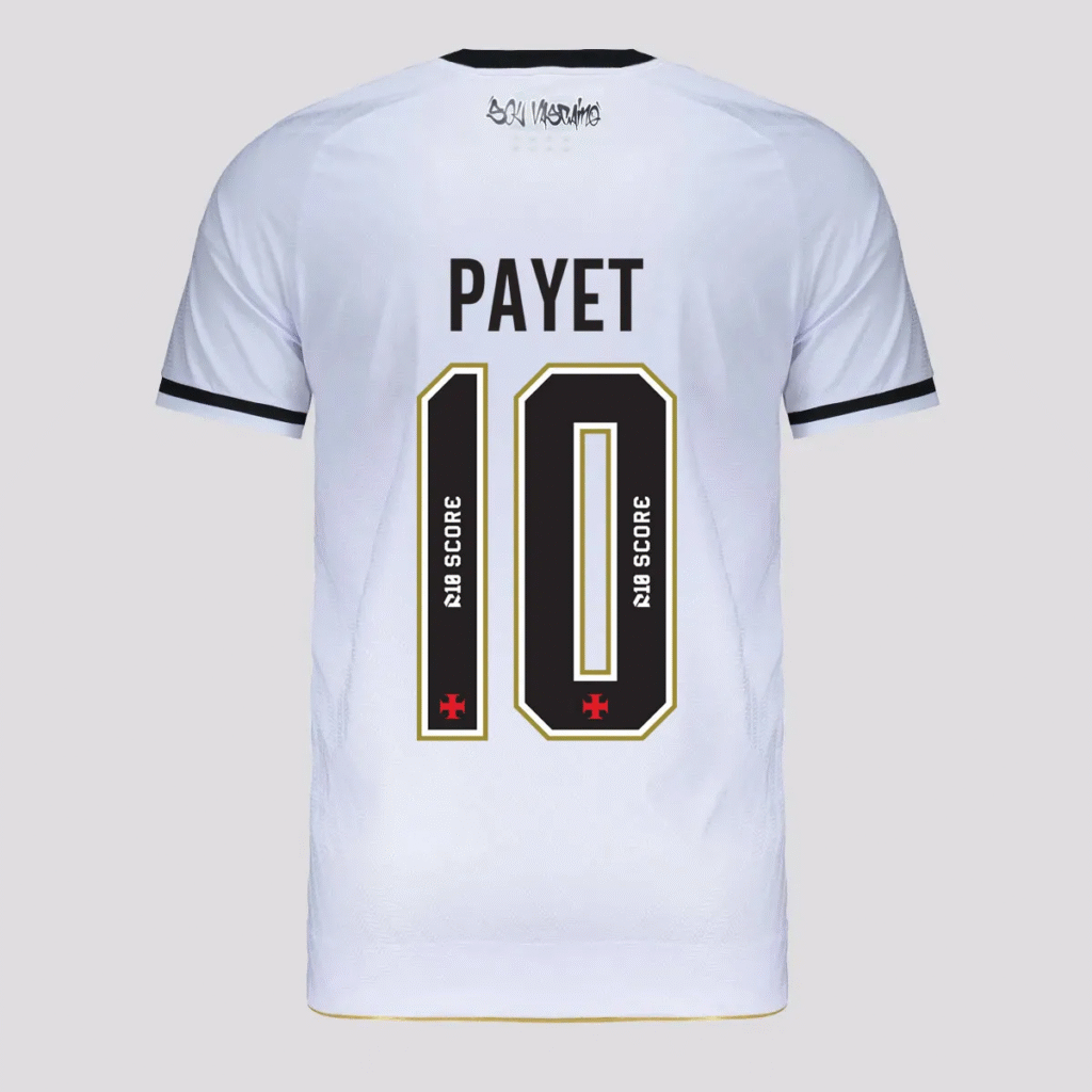 A tipografia criada pela Kappa para o Vasco da Gama em 2025 busca um equilíbrio entre a tradição do clube e a modernidade exigida pelo design esportivo atual. A fonte apresenta linhas robustas e um design limpo, com excelente legibilidade. Os cantos são ligeiramente chanfrados, conferindo um senso de dinamismo e força, sem perder a elegância. É uma fonte que se impõe, garantindo que o nome do jogador e o número sejam vistos com clareza e impacto no campo.